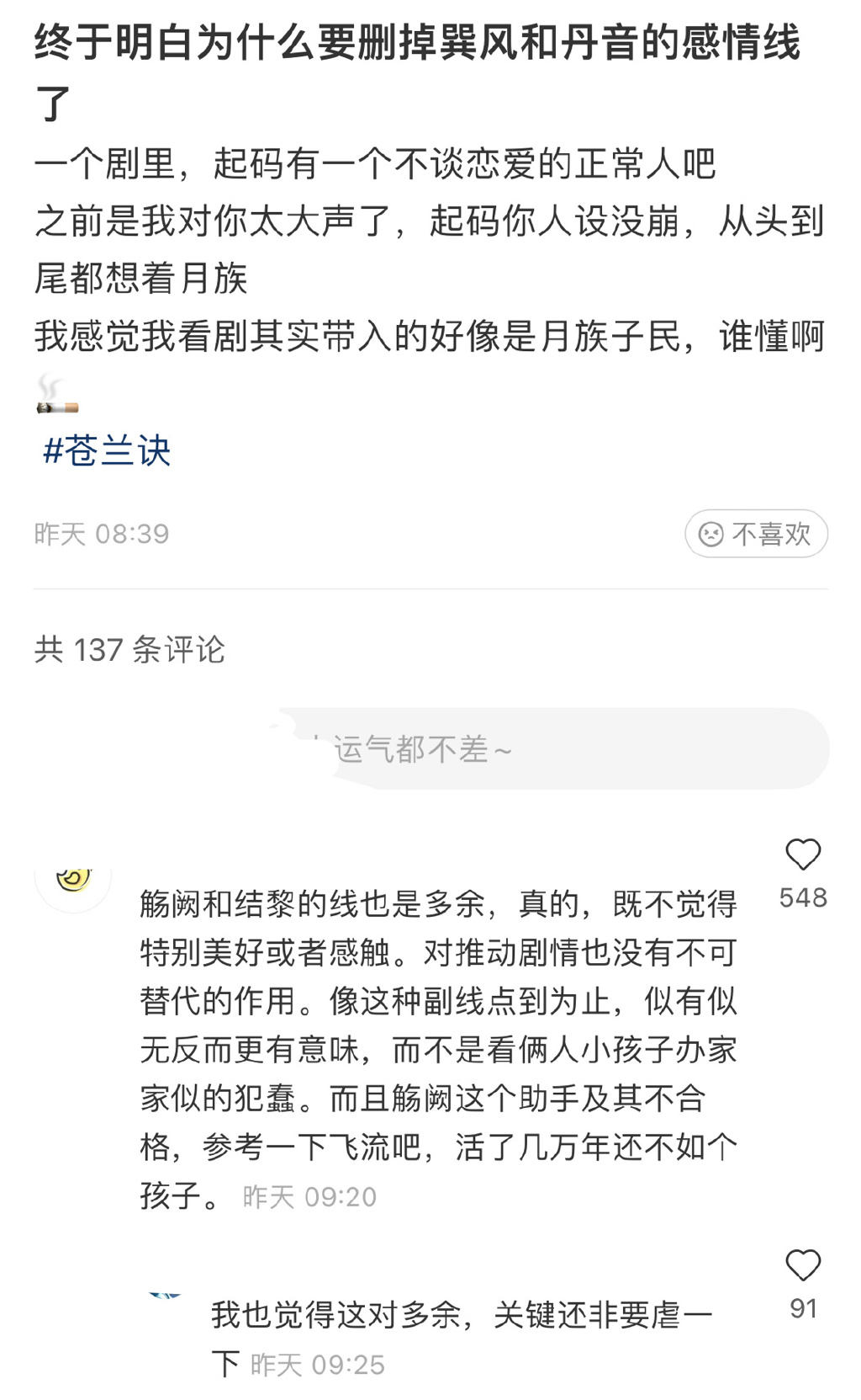 王悦伊本是《苍兰诀》的女二号单音仙子,但是我们发现,《苍兰诀》在宣传的时候决口不提这位女二,在开播之前,删掉了有关王悦伊的宣传;而且还删除了她跟张凌赫有感情线,以及跟东方青苍的弟弟巽风有感情线。