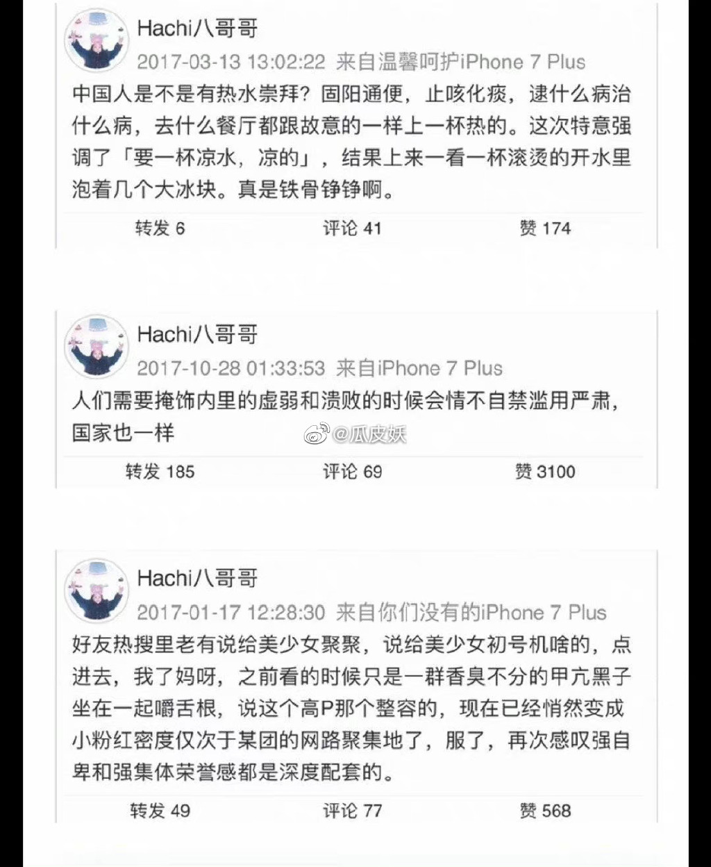 甚至国人爱热水这事儿都能拿出来加以嘲讽