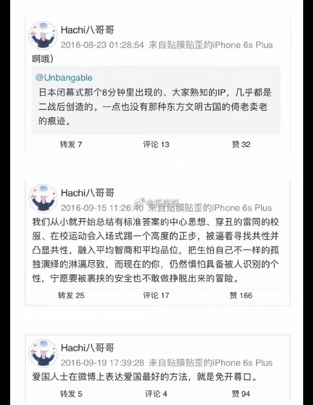 ![]() 王悦伊之所以被删掉戏份,不被宣传,主要是因为她过去在互联网上的“精日发言”,以及各种不当言论被网友给挖出来了,这样的劣迹艺人在中国挣钱,还黑自己的国家,是不被网友接受的。 她的言论包括: