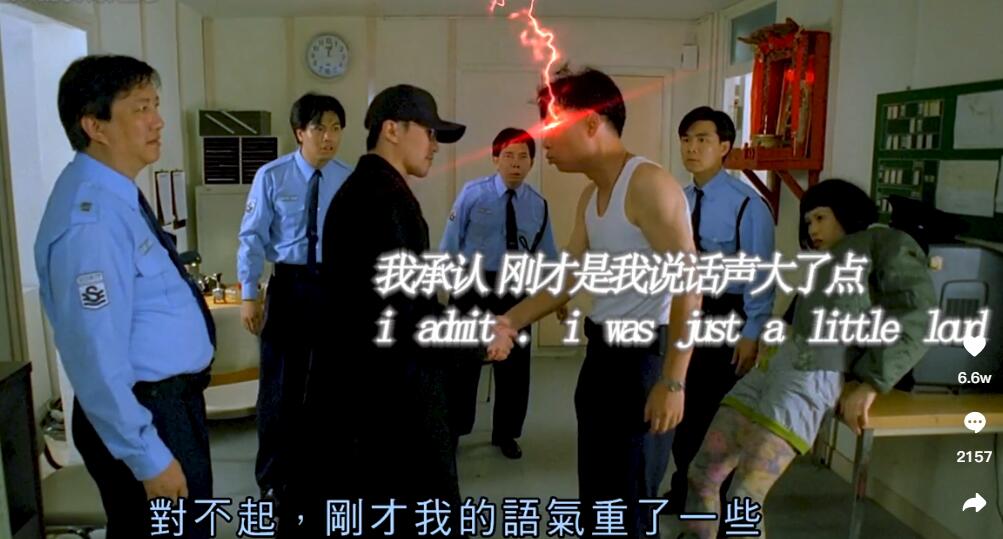 “我承认我刚才说话声音有点大”出自周星驰电影《回魂夜》中保安的台词,保安不信有阿飘,不肯和星爷他们待在一起,执意要出去,结果刚出门就遇到阿飘,火速返回向星爷道歉“对不起,我承认我刚才说话声音有点大”