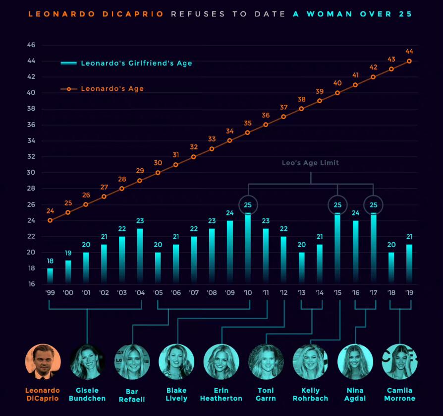 意思是:当女孩到了25岁,她们就会想要更多东西了 —— 她们想要结婚并且安定下来。这不是小李子想要的。他不想组建家庭,他也不想和那些向他施加压力的女人在一起。