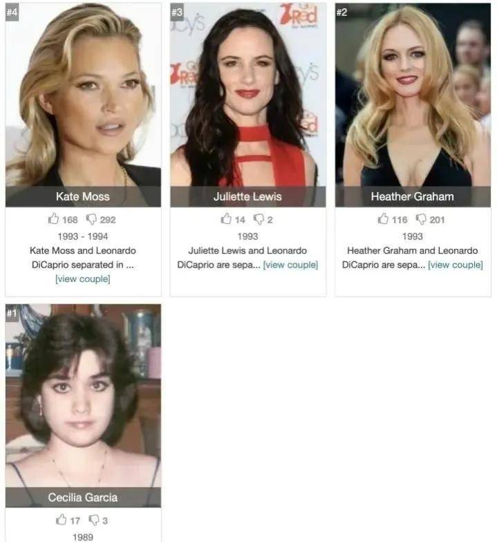 ![]() 莱奥纳多新的约会对象,长得有点像寡姐 ![]() 新女友和前夫 ![]()