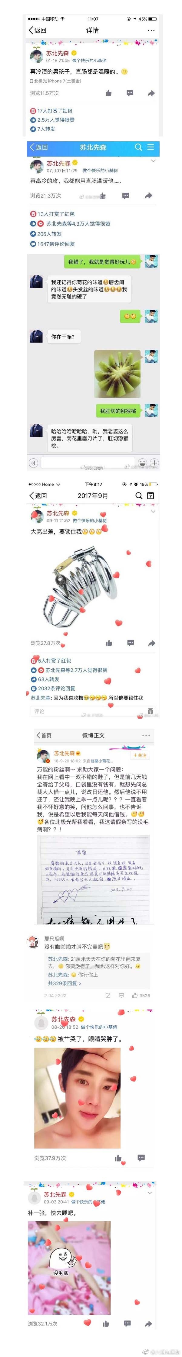 如果你经常混贴吧,刷微博,一定听过“苏北先森”他和“沈氏夫夫”,他们都属于最早一批的卖腐鼻祖网红了。在2019年时苏北先森发文表示自己和相恋三年的男友已经分手,分手原因是男友父母不能接受,男友选择了家人。下面是小5整理了一下苏北先森的合集,可能是全网最完整的版本了: