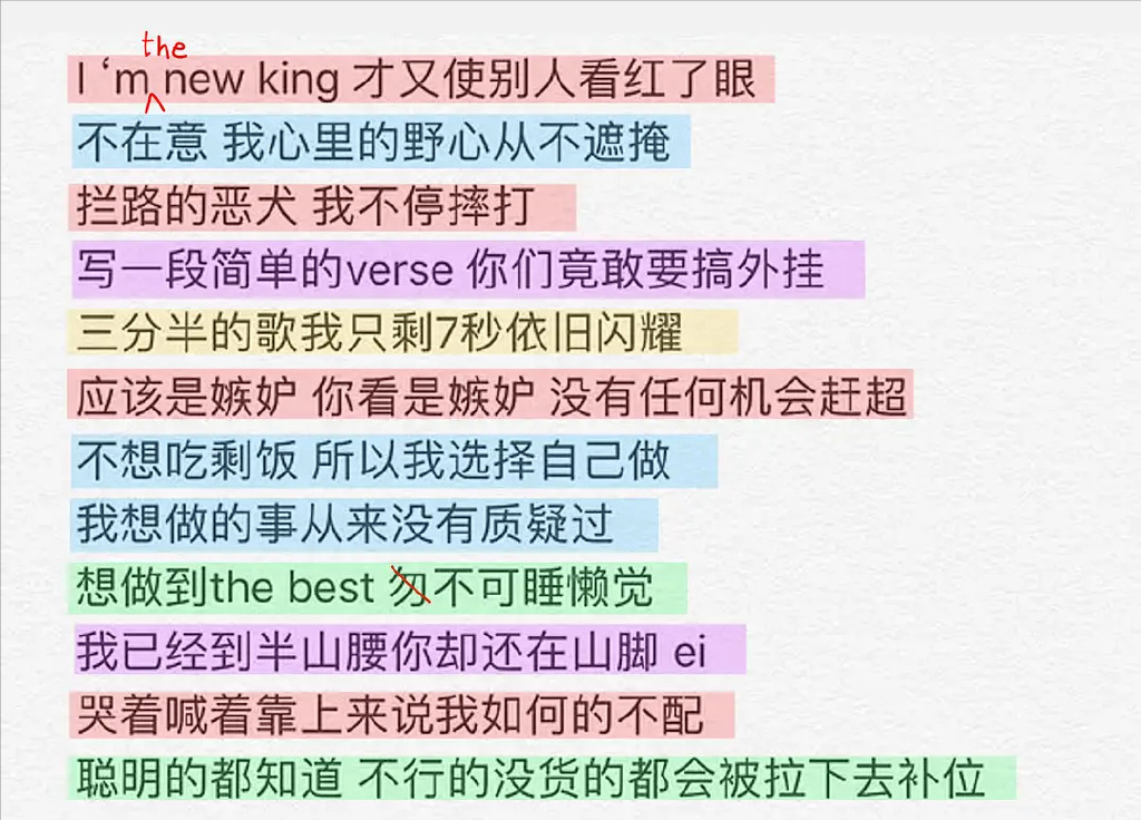 网传的严浩翔写rap内涵刘耀文指的是《New King》这首歌,先给大家看歌词,至于为什么说这首歌内涵刘耀文,下面会给大家详细分析: