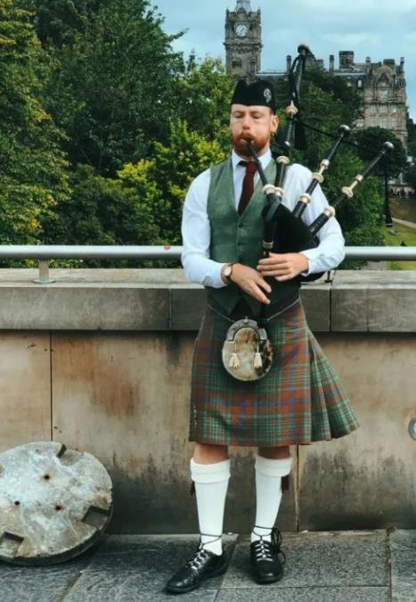 ![]() 这种裙子叫“苏格兰裙”,它还有个专门的称呼:kilt(基尔特),“kilt”这个词源自古老的苏格兰方言,翻译过来就是“把衣服折叠起来包裹身体”(to tuck up the clothes around the body)。在工业革命发生前,苏格兰高地没有什么像样的道路。人们只能骑着小矮马或者徒步穿梭在潮湿的杂草中,容易弄湿鞋袜甚至裤子,出门在外的旅人很难及时烘干衣服,长期穿着潮湿的裤子便会导致疾病。这时候kilt的优势就体现出来了!毕竟烘干袜子比烘干一条厚实的裤子要容易的多。但是苏格兰男人穿裙子的正式习俗却是由来于1707年苏格兰与英格兰合并后,苏格兰人为了对表达对合并的不满,以及彰显自己苏格兰人的身份,将穿裙子变成了他们的习俗。 ![]()