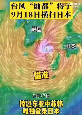 ![]() 台风风眼横扫日本画面 ![]() 巧合的是,2021年9月18日,日本同样遭遇过台风的袭击,当时台风的名字叫“灿都”,2021年,第14号台风“灿都”原本9月14日2点登陆浙江温州,当地已经做好了抗台风的准备,然而,在9月14日下午8点,台风突然转向,浙江温州台风预警解除。台风于9月16日在海上突然90°转向,朝向日本,日本开启台风预警。9月18日,台风在日本登陆,日本气象部门发布灾害预警。此后,台风“灿都”一路向东横穿日本西部,从日本的纪伊半岛向东海沿岸移动,而东日本将会持续降雨。日本气象厅发布灾害警报,呼吁日本民众警惕河川泛滥、泥石流和龙卷风等突发灾害。 看下面的图,真是90度转弯啊!! ![]() |