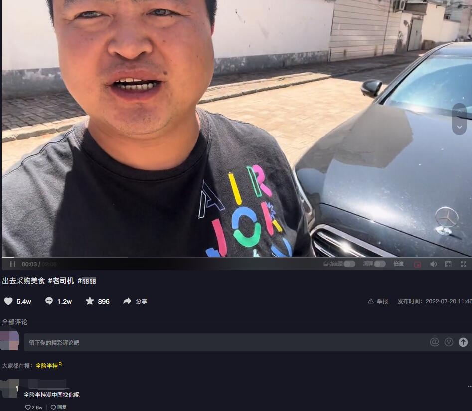 在抖音视频平台还会看到“全险半挂找丽丽”的评论,这个梗一般出现在与@丽丽(我是刘建龙),相关的视频的评论区,该博主曾经是个徒步主播,后来因为嘴臭,到处连线骂人而受到热议,又因为他还爱显摆,特别善于气哪些黑粉,一副“我就喜欢看你讨厌我,又干不掉我的样子”,因此收获了很多黑粉,他可能是网黑最多的网红的了吧,因此在关于他的视频下,总会有很多黑粉骂他,而“全险半挂找丽丽”就是调侃他得罪太多人了,小心被半挂车撞。