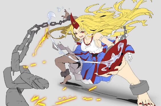 《东方Project》中的星熊勇仪因其头顶的红色长角就可得名“红有三”。