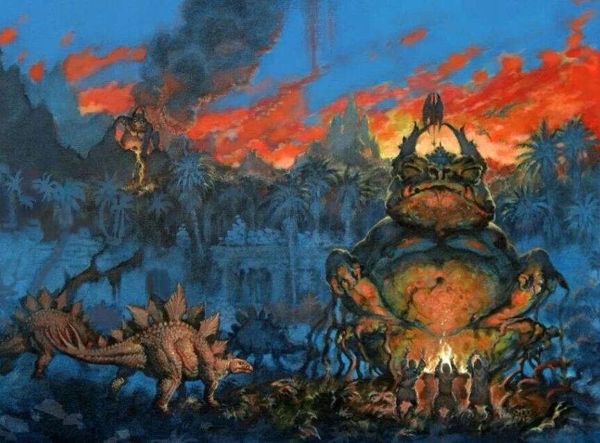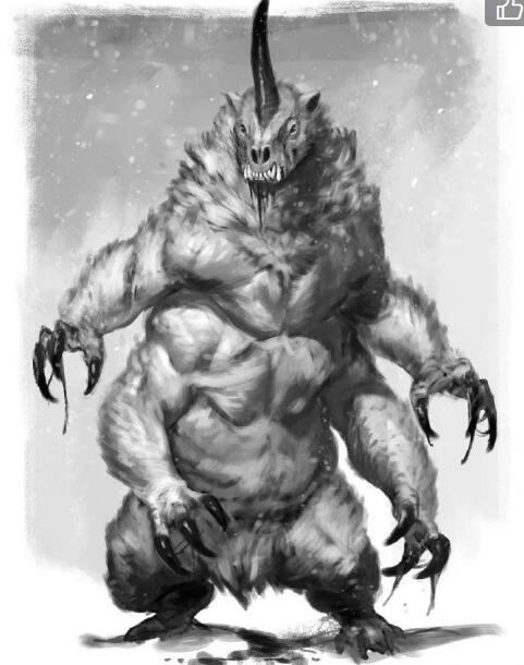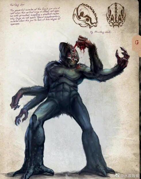 克苏鲁神秘生物-古革巨人 古革巨人(Gug)是美国小说家霍华德·菲利普·洛夫克拉夫特所创造的克苏鲁神话中的一类生物。它们是身躯庞大的黑色怪物,普通的个体至少也有20英尺高。古革巨人居住在幻梦境,因为在崇拜各种神祇时进行的仪式过于病态和令人厌恶,遂被放逐到幻梦境的地下世界之中。 ![]() “那怪物的脚长达两英尺半,长着可怕的钩爪。然后,又一只脚出现在眼前;接下来,一只覆着黑色软毛的巨大手臂出现了,那手臂在前端分裂成两支,每只手都长得和脚爪酷似。随之现形的,是两只发出粉红色亮光的眼睛,醒来的巨人那像桶那么大的头颅摇摇晃晃地露了出来。两只眼睛在头部的两侧,各自突出达两英寸,被粗毛和骨头保护着。但是,头颅上最令人恐惧的,还是它的巨口:那张嘴不是水平、而是垂直地生长着,生满了巨大的黄牙,从头顶直裂到下方。” ——H.P.洛夫克拉夫特《梦寻秘境卡达斯》 ![]() 古革巨人(Gug)古革巨人是一个强壮的吃人巨人。被诅咒,他们只能呆在黑暗的地下。 它们是大型的黑色野兽,每条手臂上都生有带有利爪的两条前臂,脚部酷似鸟类或恐龙,周身覆盖着黑亮的毛皮。它们的相貌十分狰狞,一双凸出的眼睛分布在头部两侧,整个头部正面是一张生满尖牙的垂直巨口。古革巨人没有语言,它们通过面部表情和身体动作进行交流。 古革巨人被地球诸神们驱逐到幻梦境的地下世界,因为它们的拜神仪式过于亵渎和令人厌恶。它们的个体在地下世界广泛分布着,那里不存在白天和黑夜。 大多数巨人居住在地下城(Koth)中的圆形塔楼中。 ![]() 在那里,巨大的圆塔不断向黑色的洞顶部延伸,每个塔都有一个三十英尺高的幽深入口。整座城市铺满了粗糙的石块,在城市中心的科斯塔(Tower of Koth)是通向幻梦境表层的中央塔楼, 城市附近巨大的岩石标志着古革巨人们的墓地。由于某些禁忌,这些巨人会避开食尸鬼(他们经常去古革巨人墓地)。