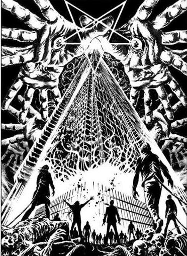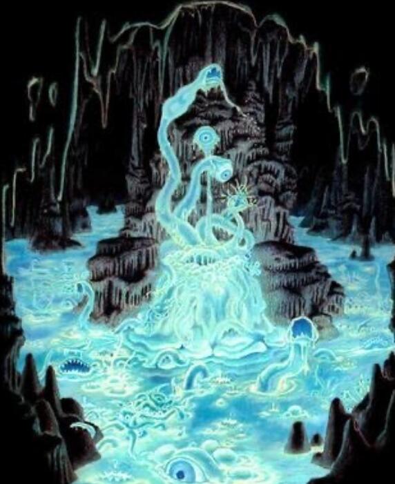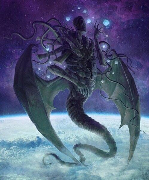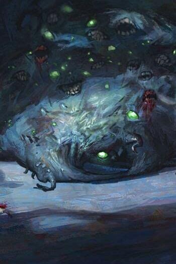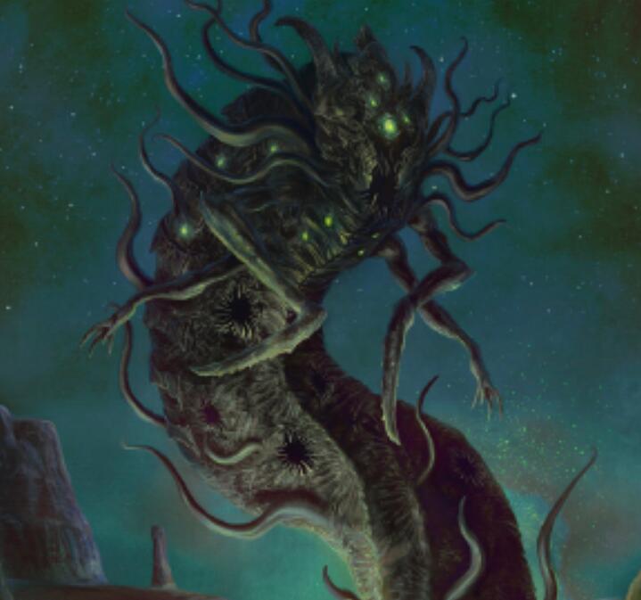 伊克纳格尼斯兹 其形象为一团黑色化脓的不定型物体,上面长有许多触手和眼睛,体表不断的起泡爆裂并剧烈地喷出类似岩浆的物质。无性繁殖出了旧日支配者茨泰尔贞格米(Zstylzhemgni)。 ![]() 疯狂愤怒地裂变着,他来了—— 伊克纳格尼斯兹,未知领域的污秽之主, 可怕的阿撒托斯的同时代者 谁以鼓声唤起了混沌。 ……以邪恶的繁殖力喷突他的卵。 没有凡人的眼睛可以注视他的脸 也无法一瞥他疯狂的分裂, 以视力和理智为代价,活下去吧。” 卡亚赫·卡阿尔赫 ![]() 外神卡亚赫·卡阿尔赫(Kaajh’Kaalbh)是环绕在阿撒托斯身边的无形舞者之一,别称“无尽折磨之主(Lord of Eternal Torment)”。它居住在一个无序的平行维度,在那里所有东西都是不稳定的,此外神的形态会不断地构成与分解,因此完全没有所谓的真正形态。在这个维度中,任何想要召唤它的人都需要一个被称为“空鬼(Dimensional Shamblers)”的外星种族帮助,而这位外神可能会以各种形态出现,通常是巨大的水银湖或岩浆池。 艾尔达戈斯 ![]() 艾尔达戈斯(Ialdagorth)是外神之一,别称“暗之吞噬者”,由凯文·埃里克·谢里登(Kevin Eric Sheridan)创造,初登场于《Servants of the Coils》。艾尔达戈斯是环绕阿撒托斯宫廷的无形舞者之一。它与阿撒托斯有着某种血缘关系,被认为是他的表亲。它看起来像一团无定型的黑色薄雾,看到它的人会有一种莫名的恐惧感。艾尔达戈斯能够被特定的咒语召唤至地球,它所到之处会被黑色薄雾所笼罩,而其中的一切将会被其吞噬。与多数外神类似,艾尔达戈斯在宇宙早期就已存在,由于它是阿撒托斯的表亲,故有一些说法称它与阿撒托斯同时诞生于无尽混沌之中。 克塔帕 ![]() 别称“星核之神”。形象为一团巨大的有生命、有感觉的岩浆,居住在地幔层。 这不仅是内部令人窒息、沉重和灼热的气息,而且还存在着地球的真正本质——一个可怕的存在,其起源隐藏在天穹的最外边缘……在地球深处,一些人用记录器捕捉到的尖叫声和令人心碎的哭嚎声并不是地狱的声音,而是沉睡在地球深处的克塔帕的流动声。 海德拉 别称“千面之月”,形象为一片浮现着无数哭泣头颅的灰色淤泥海洋。这是一个通过吸收智慧种族的头颅和大脑来生存的吸血鬼般的存在,它生活在传统时间和空间之外的异形维度之中。 ![]() “这里看上去像是一片灰色淤泥海洋,如同原生质体般毫无特点。但是那黝黑的斑点仔细辨认就像是头颅……数以千计的人头在灰色的海洋中摆动沉浮,然而更多的是非人类头颅……这些脑袋还活着,它们的眼睛凝视着难以名状的痛苦,它们的双唇诉说着无声的悲恸,泪水从沉没的面颊上滑落。甚至那些恐怖的非人头颅——鸟形的,蜥蜴的,由有生命的石头和金属构成的怪物,还有植物生物——都表现出了对于发生在自己身上的折磨的无穷苦痛。”