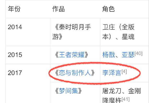 2017年,为手机游戏《恋与制作人》男主角之一的李泽言配音。