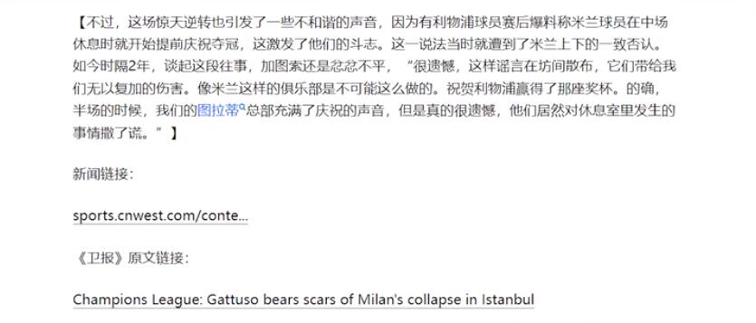 不过这个传闻被AC米兰的队员集体否认,也不太可能会发生这种事,因为这场逆风翻盘局太经典,即使这个传闻是假的,但这个梗还是被流传下来,多被网友们用在各种竞技赛事中。