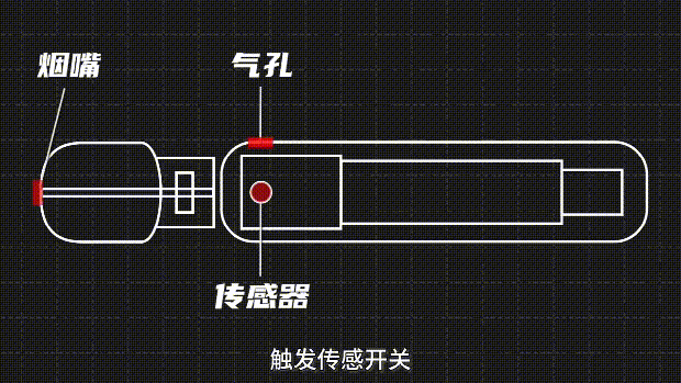工作原理和空气加湿器类似,就是将烟油通过雾化器雾化形成烟雾,然后吸烟者再把烟雾吸到体内(图2)。