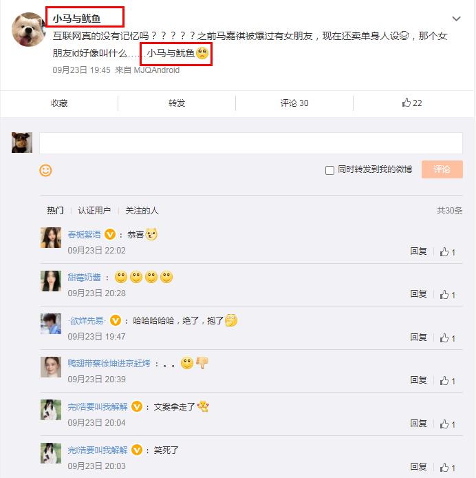 很多爱豆的女粉丝,会在微博上声称自己是“爱豆的女朋友”,类似的文案是:“互联网真的没有记忆吗?????之前马嘉祺被爆过有女朋友,现在还卖单身人设,那个女朋友id好像叫什么……@小马与鱿鱼。”看到这样的消息,马嘉祺的粉丝一开始会吓一跳,但是仔细一看,原来发微博的ID就是@小马与鱿鱼。有人说,马嘉祺初三谈的女朋友也是类似的套路,大约就是一个初三的女粉丝说自己是其女朋友,但是真相真的是如此吗?