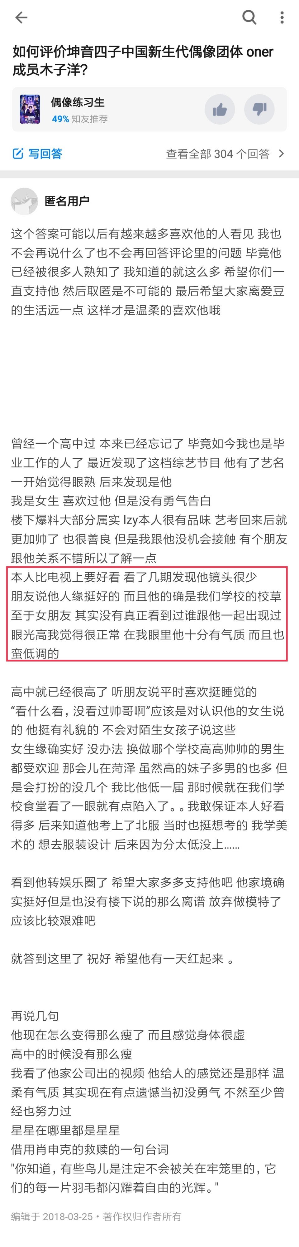 图⑤,校友朋友圈对他的评价,称呼他为“洋仔”“小羊羔”,知乎同是参加艺考的人对他的评价。