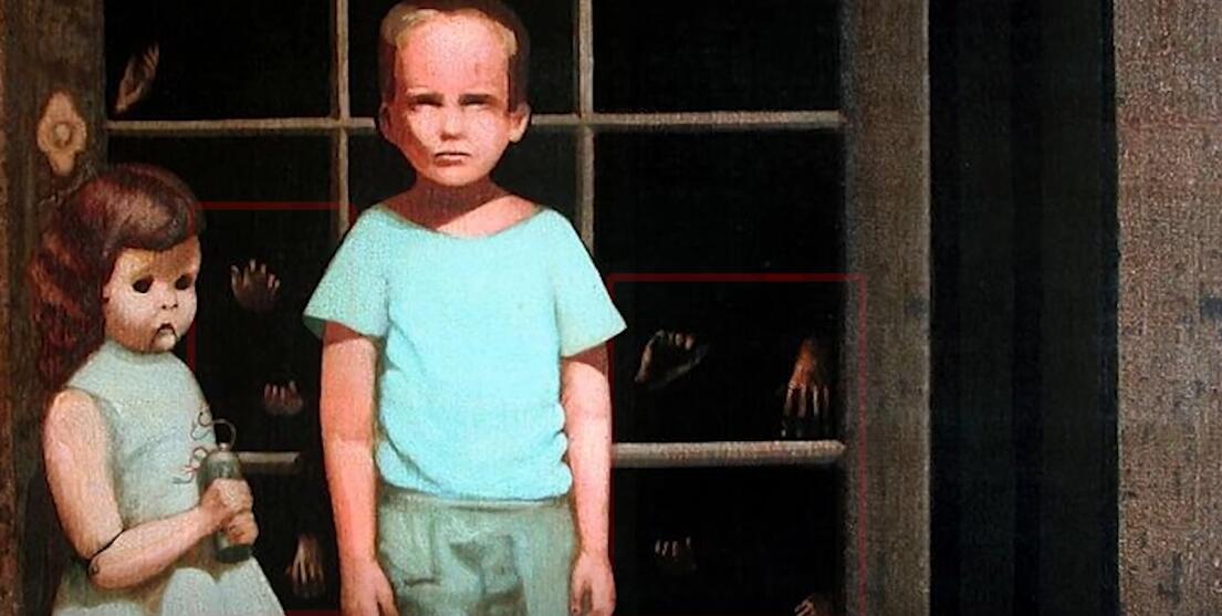 当然还有人跳出来说,前面的小男孩和小女孩都只是个幌子。这幅画真正的诡异之处在于门后面,那里隐约可见的人手,这表明门后面就是地狱。每当夜晚来临的时候,这幅画就会吞噬掉画主人的灵魂。