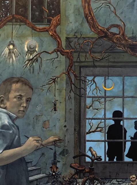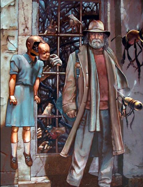 根据比尔本人的说法,化的灵感来源于他年幼时和小伙伴的合影,背后的门象征着梦境与清醒的分界线,无数的手则代表着未知的命运。画作在70年代首次展出之后就被人买走了,后来几经周转,最后到了一对老夫妻手上。