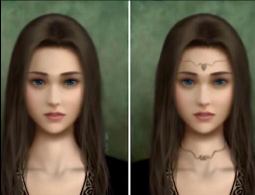 作者觉得戴项链会显得画中的女孩脖子短,因此最后公开在互联网上的只剩下了不戴项链的版本。之所以很多人觉得画中的女子似曾相识,则是因为作者在创作时参考了美国著名影星詹妮弗康纳利的五官。
