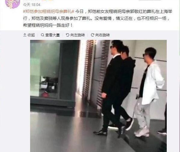 不过后来2019年时,程晓玥的母亲因病去世,郑恺曾发文悼念,还穿一身黑衣现身葬礼。