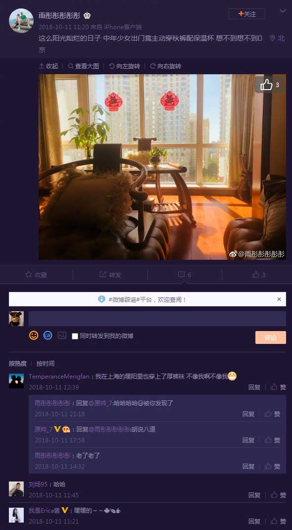 ![]() 马雨彤大学毕业于Royal Holloway(伦敦大学皇家霍洛威学院 ),她的微博地址是:https://weibo.com/p/1005051963281771,在微博中,她记录了大量自己和原帅的生活故事。 ![]() 翻看马雨彤的微博会发现,她在2018年就跟原帅开始互动了,此外她在2020年的时候说自己离开母校Royal Holloway已经8年,也就是2012年就大学毕业的,这么算来,马雨彤的年龄可能是1990年左右出生的,北京人,比原帅要大一些。 ![]() |