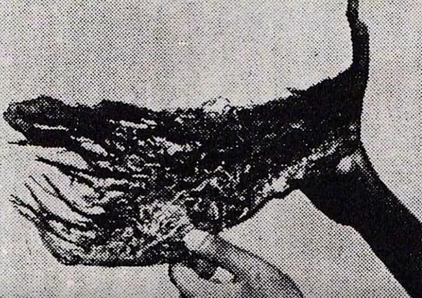1977年,日本一艘名叫瑞洋丸的渔船打捞上来一只巨型海洋生物的尸体,尸体长约十米,体重接近两吨,高度腐烂,浑身上下都覆盖着白色的油脂,散发着一股浓烈的恶臭。因为担心这个生物会熏死船上的鱼,所以船员们在拍了几张照片,取下一块纤维作为样本后,就匆匆把怪物丢回海里。