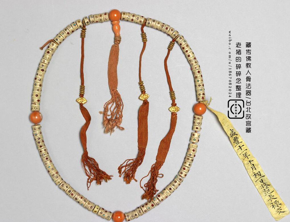 其实台北这些人骨文物也都是从北京故宫运走的,都是清宫的物件。这类的文物目前在故宫博物院,承德避暑山庄,甚至成都的四川博物院都有不少遗存,基本都是人骨念珠,嘎巴拉碗,扎玛茹鼓,皇家的这些大都是班禅进献(高僧的遗骨做的),驻藏济咙呼图克图进献,或是大小金川等造反头领大恶之人骨头做的。