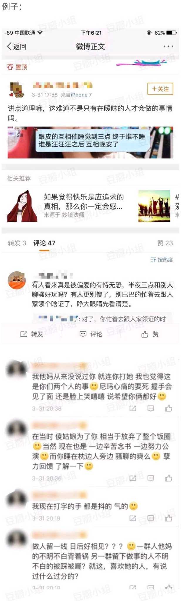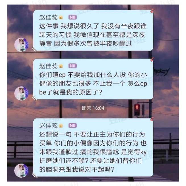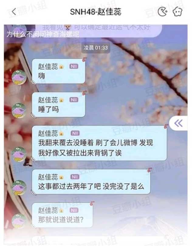 此外,两个人分手时间是在2018年4月份前后。 ![]() 袁一琦和沈梦瑶be时间线: 2018年3月26号,沈梦瑶小号称心情不好,袁一琦还在温柔安慰 ![]() 2018年3月29号,赵家蕊在口袋说自己新交了2个朋友 ![]() 两天后,一额就是3月31日,黑喵大粉+沈梦瑶单推开始在微博集体内涵“聊骚” ![]() 赵家蕊第一次回应 ![]() 第二次回应 ![]() 第三次回应 ![]() 对于此事网友和刘洁的评价: