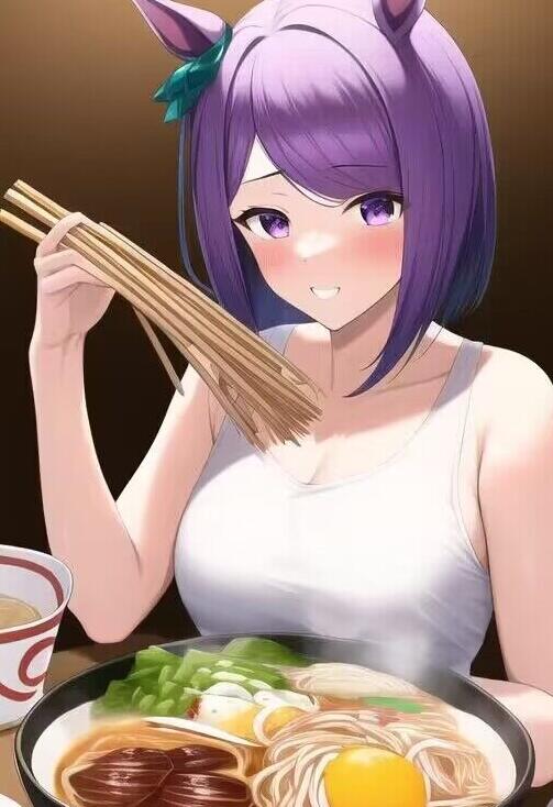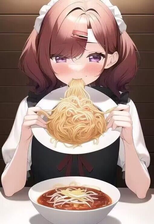 “用手吃面”出自最近一些二次元女生徒手吃面的图片,而这些作品其实都是AI画出来的。