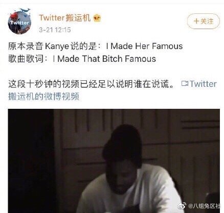这说明TS从Kanye那里听到过"Yeah,she does.It made herfamous.”这样的词。但是卡载珊的视频中却拿不出Kanyei对TS念过made TS famous的证据,如果有她早放出来了,这才是打脸的最佳素材。