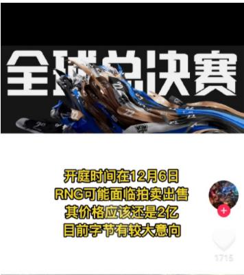 重磅!RNG会在未来几天被竞拍解散目前RNG刚从S12世界赛失败的阴影中消停下来,就在其他俱乐部高层传出来RNG会在未来几天,多至几个周内挂上货架。