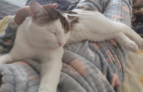 妈妈自言自语结束后又窝到床上来,那我要挪位置咯,睡哪呢,就睡在妈妈身上吧,毕竟我是妈妈最爱的小猫。
