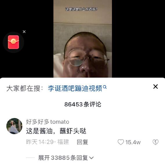 “虾头蘸酱油”的梗出自脱口秀演员李诞视频下面的热评第一,本来他是想分享护肤日常,询问自己敷的是什么功效的呢面膜,但是由于他本人是只虾系男友,所以热评毫不客气的说“酱油蘸虾头的”。