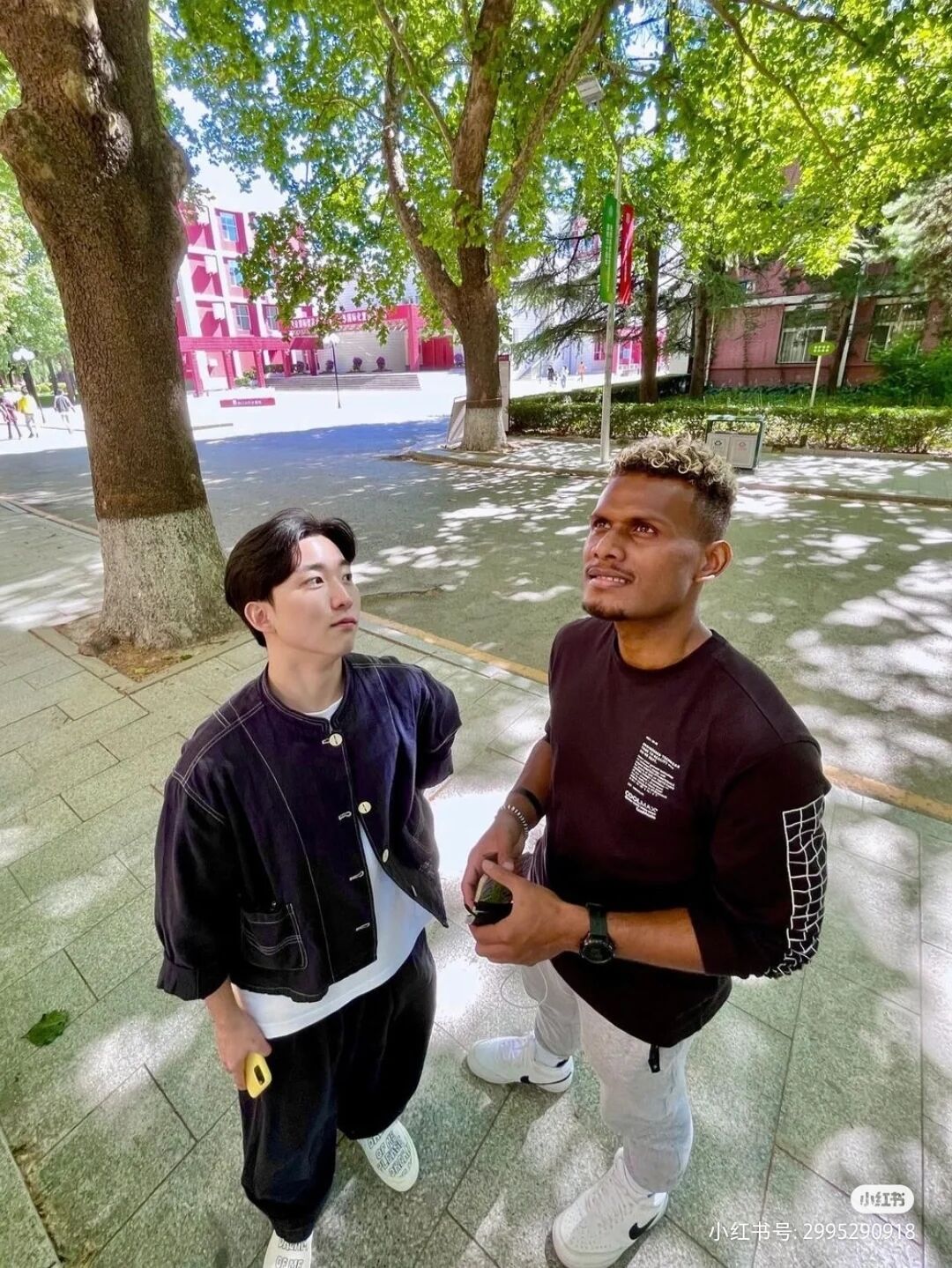 林孝灿在社交平台发布动态和同学一起逛校园,眼尖的网友认出,这是北京外国语学院,看来林孝灿的弟弟将会在这里读书。