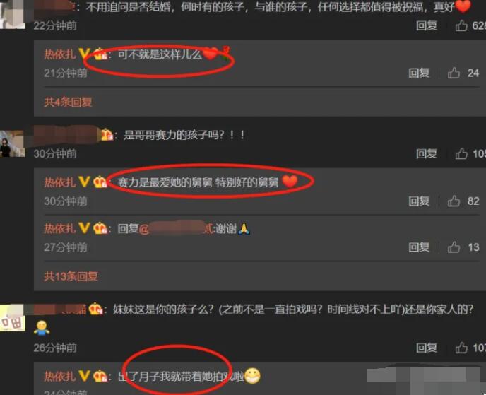 此外,热扎依在微博上跟粉丝互动的时候说:“出了月子我就带着她(孩子)拍戏。”这个说法背后有好几层含义可以解读: