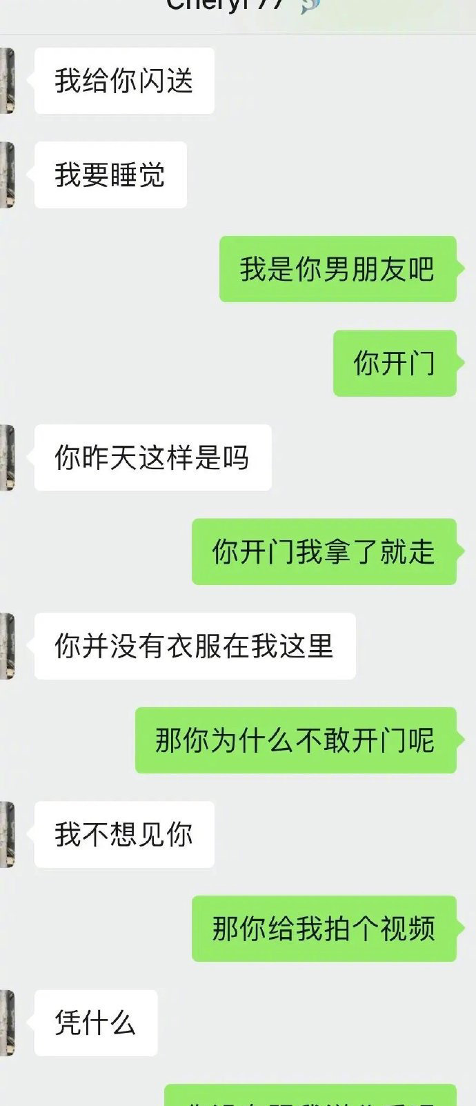 近日有网友发帖,2022年10月30号凌晨张欣尧与该网友的女友一起回家,待到早上10点多被他敲门发现,而彼时他并未与女友分手,并且还晒出了与女友的聊天记录和监控视频记录,来看下: