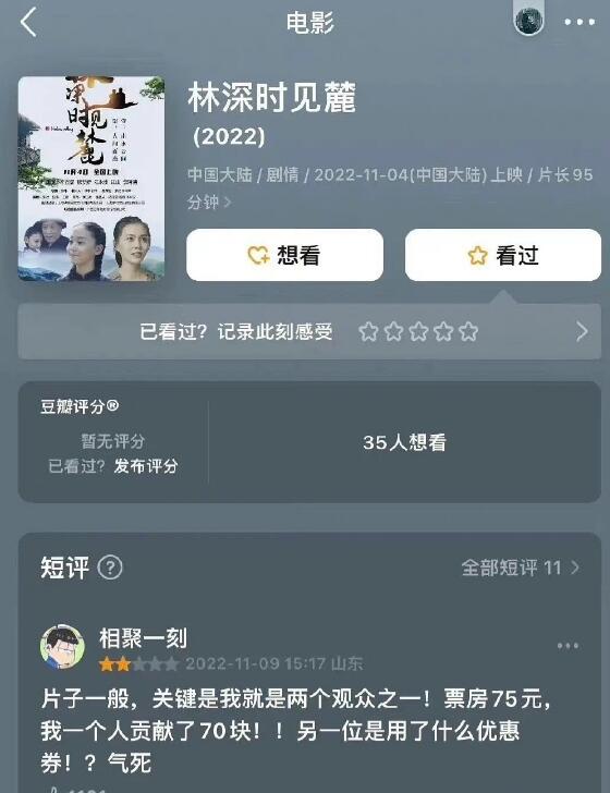 近日,电影《林深时见麓》首日综合票房仅为56元,震惊了一众网友,有网友调侃道,这票房怕是连电费都不够吧!还有网友称,这会不会是电影的另类营销方式!