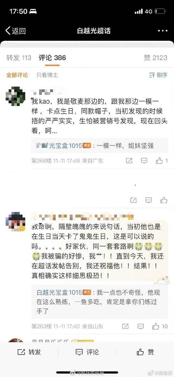 4 一口一个说着这个卡点是和你们家的,那个卡点是和你们家的,更有甚者连微博自动发送的生日祝福都不放过也来嗑一口,白敬亭在你们眼里就是24h冲浪闲人,每天时刻关注动态,24h一刻不停,只为给你们嗑糖,殊不知是你们自己无端的臆想和莫须有的梦。