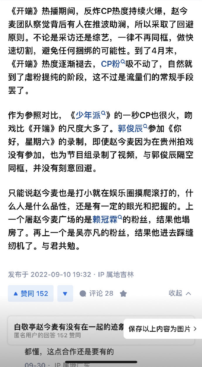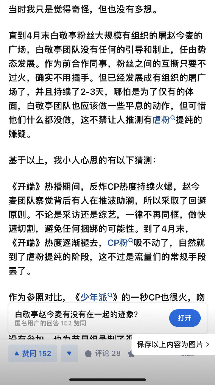 6,有网友分析了白敬亭和赵今麦相关故事:为何当初赵今麦在《开端》走红之后,并未和白敬亭继续同框,比如某综艺邀请了赵今麦,但是赵今麦并未前往等问题。