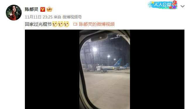 3.11日陈都灵说回家过光棍节,疑似宣布和汪汐潮分手恢复单身;