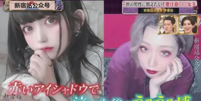 地雷女特殊妆容,眼睛周围是红肿的,给人一种哭过的感觉