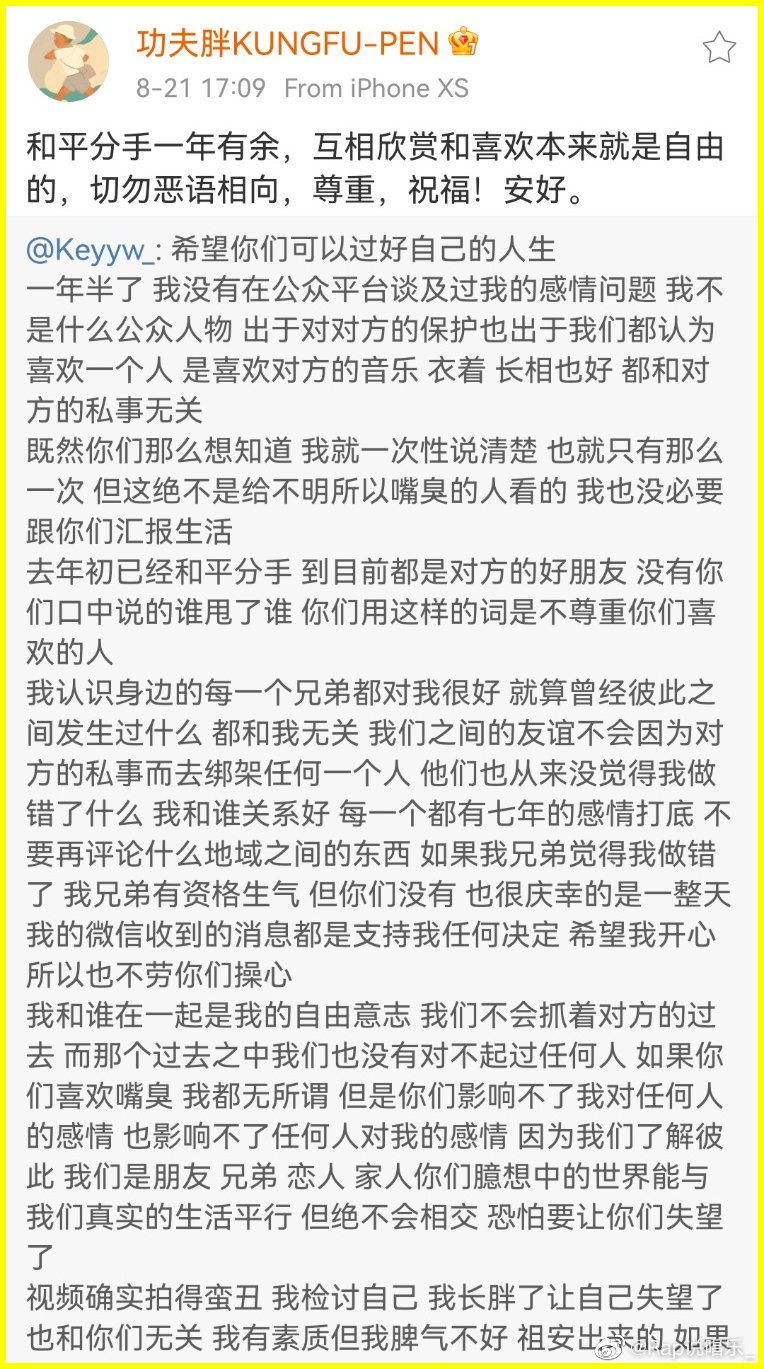 ![]() 对于功夫胖女友的颜值和身材,有网友提出了疑问:“为什么rapper的女朋友都那么好看?” 可能喜欢说唱的女孩本身都比较漂亮,其次有才华的人自然也会吸引很多人喜欢,功夫胖也不是啥中专rapper哈,正经武汉音乐学院毕业的,人称湘江词王,做说唱是十多年啦,张艺兴也有合作过。可以说非常有才华了!所以,等你站在行业顶端的时候,身边也不会缺美女的! 在跟这位美女之前,功夫胖还有一个前任,两个人在2020年初分手,后来功夫胖的前任在2021年8月份被拍摄到跟melo谈恋爱,下面是功夫胖前任女友的照片: ![]() 分手后两个人依然是朋友,看的出来,和平分手,很体面。 ![]() |