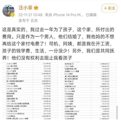 台媒曝大S起诉汪小菲未履行离婚协议 ,至今累积欠超500万元。汪小菲晒账单明细回应:我对孩子毫无保留 。