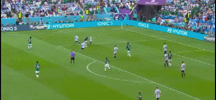 在2022年世界杯阿根廷对战沙特的比赛中,第53分钟,沙特阿拉伯队前场进攻,前锋10号达瓦萨里连续摆脱三名防守队员后打出一记世界波!沙特阿拉伯队2-1反超比分!