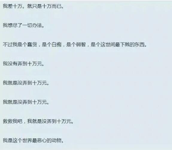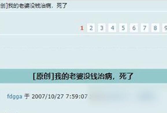"差十万"则是出自某社区2007年10月份的一个帖子,帖子成自己老婆没钱治病,医生告诉他需要30万,他把家产全卖了,只有20万,最后只差差10万而已,他想尽了一切办法,可就是没弄到这10万。