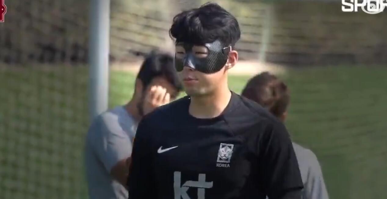 孙兴慜读作sūn xīng mǐn。此前因为在欧冠比赛中头部受伤,眼眶骨折,因此在训练的时候他戴上了特制的保护面具,化身面具侠。