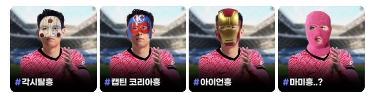 下面是韩国球迷为孙兴慜设计的面具样式: