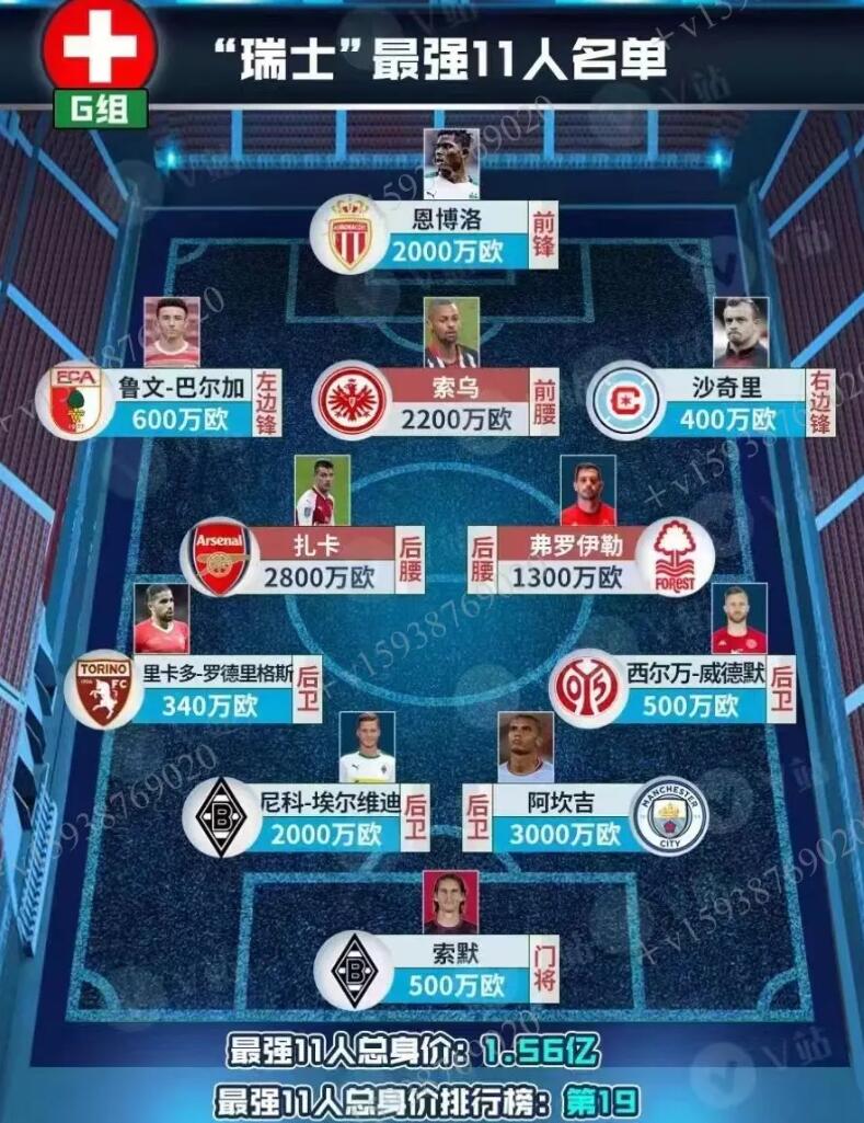 瑞士队的首场小组赛刚刚结束,瑞士1:0击败喀麦隆,现效力于摩纳哥足球俱乐部,身价2000万欧元的恩博洛打进全场唯一进球。