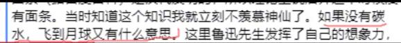 而脱口秀演员鸟鸟在QQ阅读为这一段落进行了点评“如果没有碳水,嫦娥飞到月球又有意义呢?”思路格外的刁钻,引起了网友的广泛讨论。