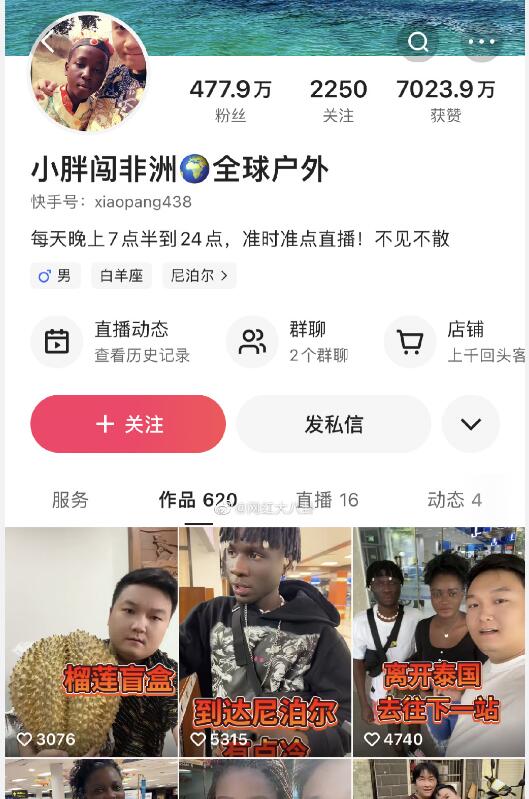 日前,拥有近500万粉丝的网红主播@小胖闯非洲 在尼泊尔加德满都的一市场内遇刺身亡,终年29岁。