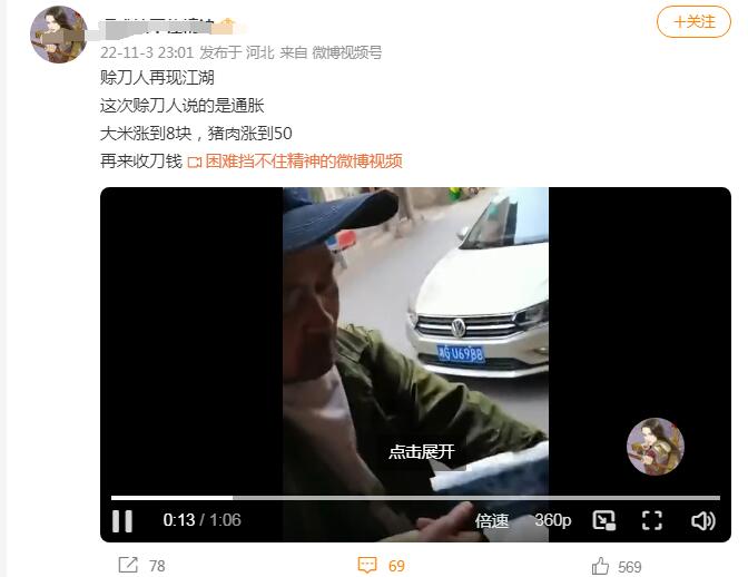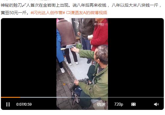 日前,在湖南张家界市永定区官黎坪煤厂路官黎坪中心幼儿园旁金玉楼批发超市附近,赊刀人重现江湖,这次预言说未来会通胀,八年后大米涨到8块,猪肉涨到50块,到时再来收90块的刀钱。